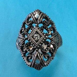Oxidized Sterling Silver, Gold and Diamond Antique Ring