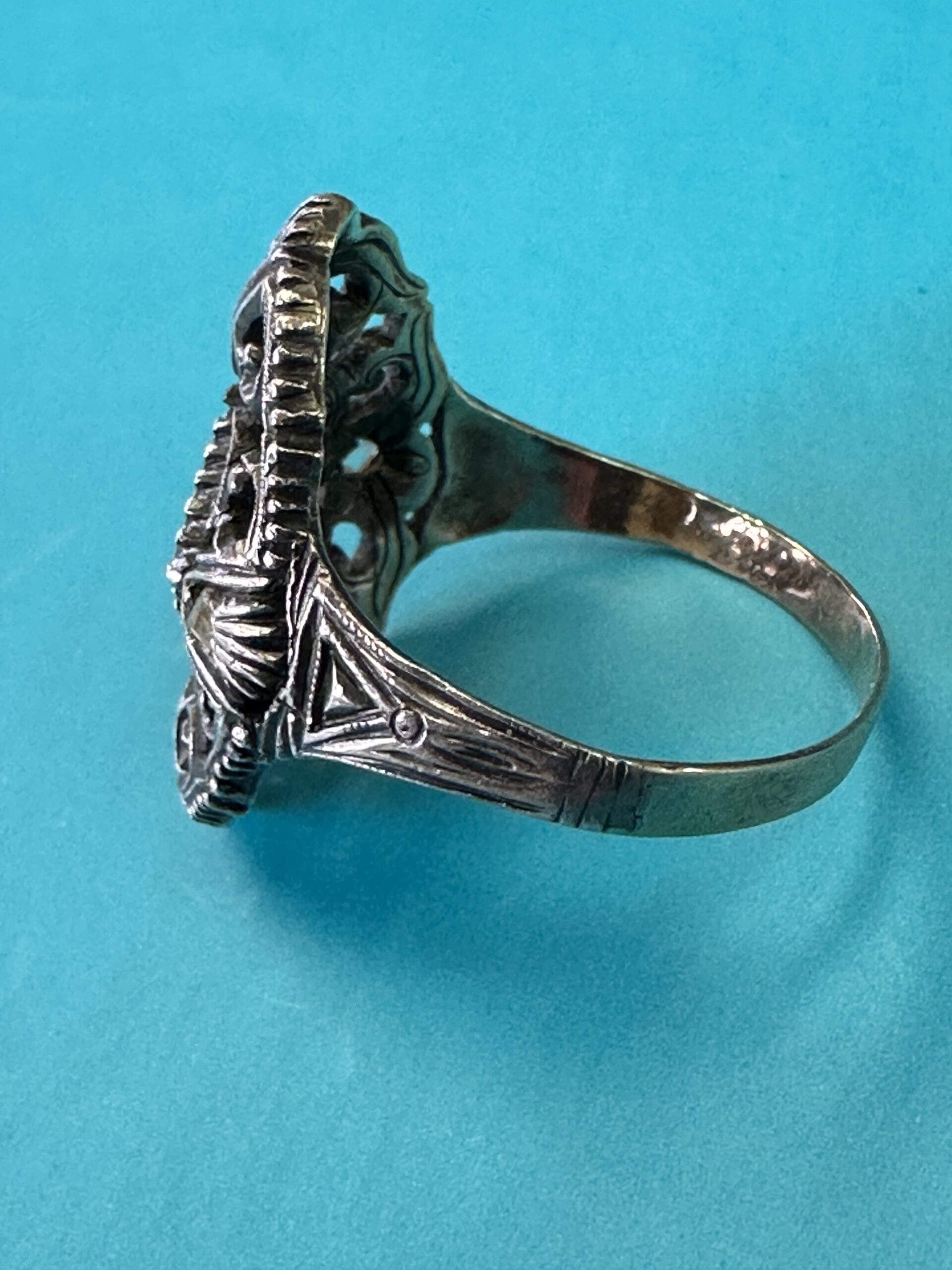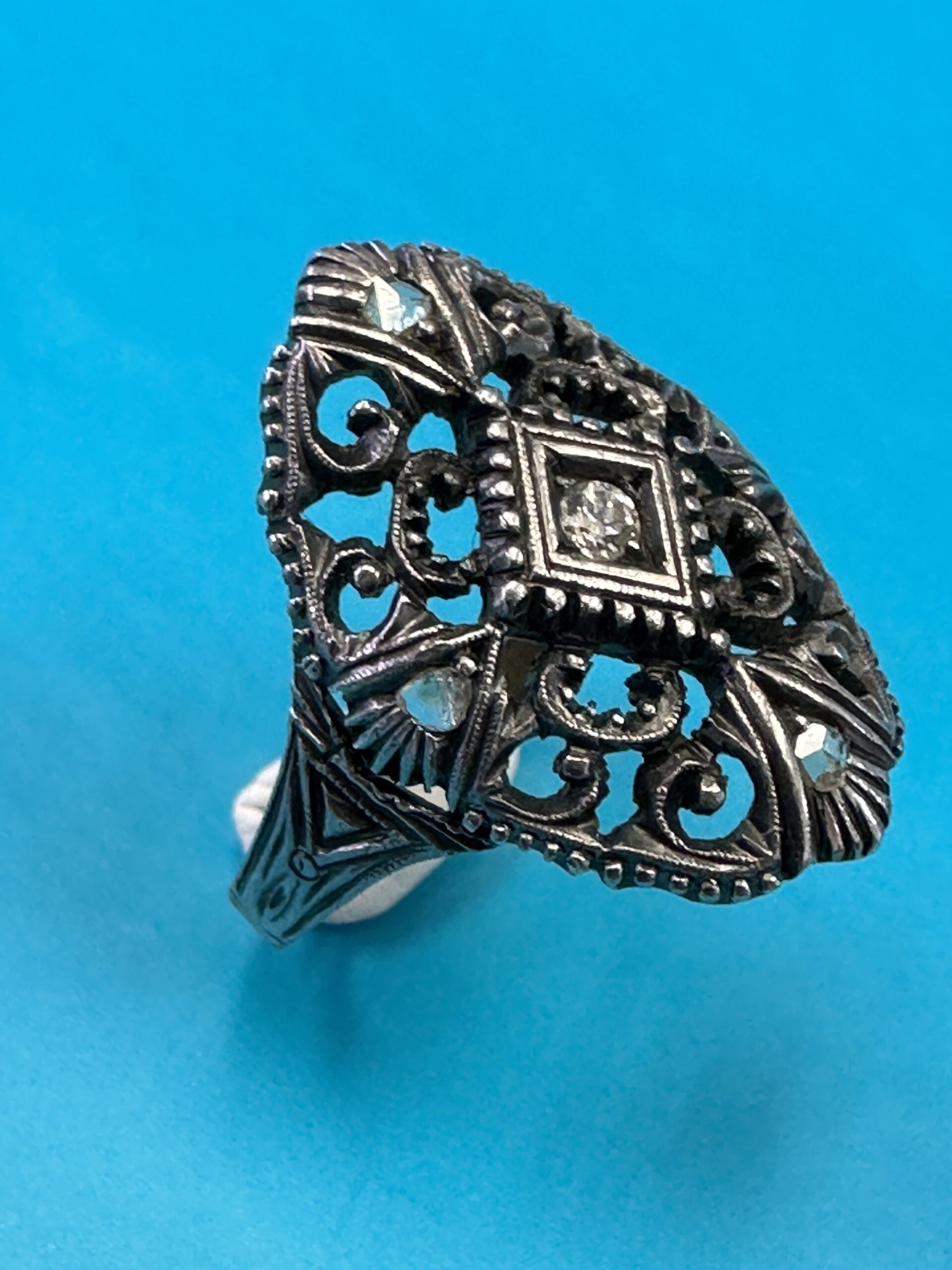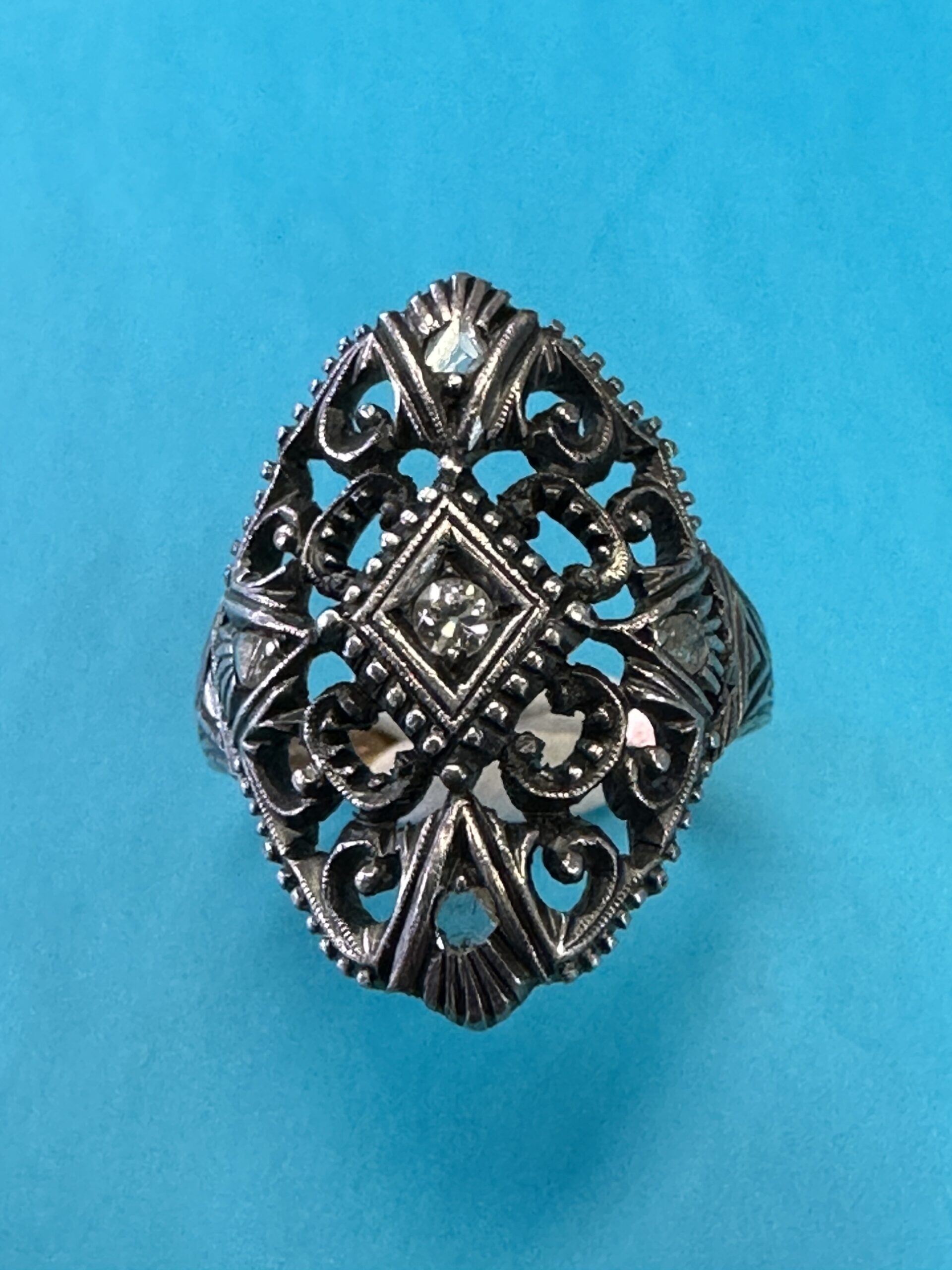 Oxidized Sterling Silver, Gold and Diamond Antique Ring